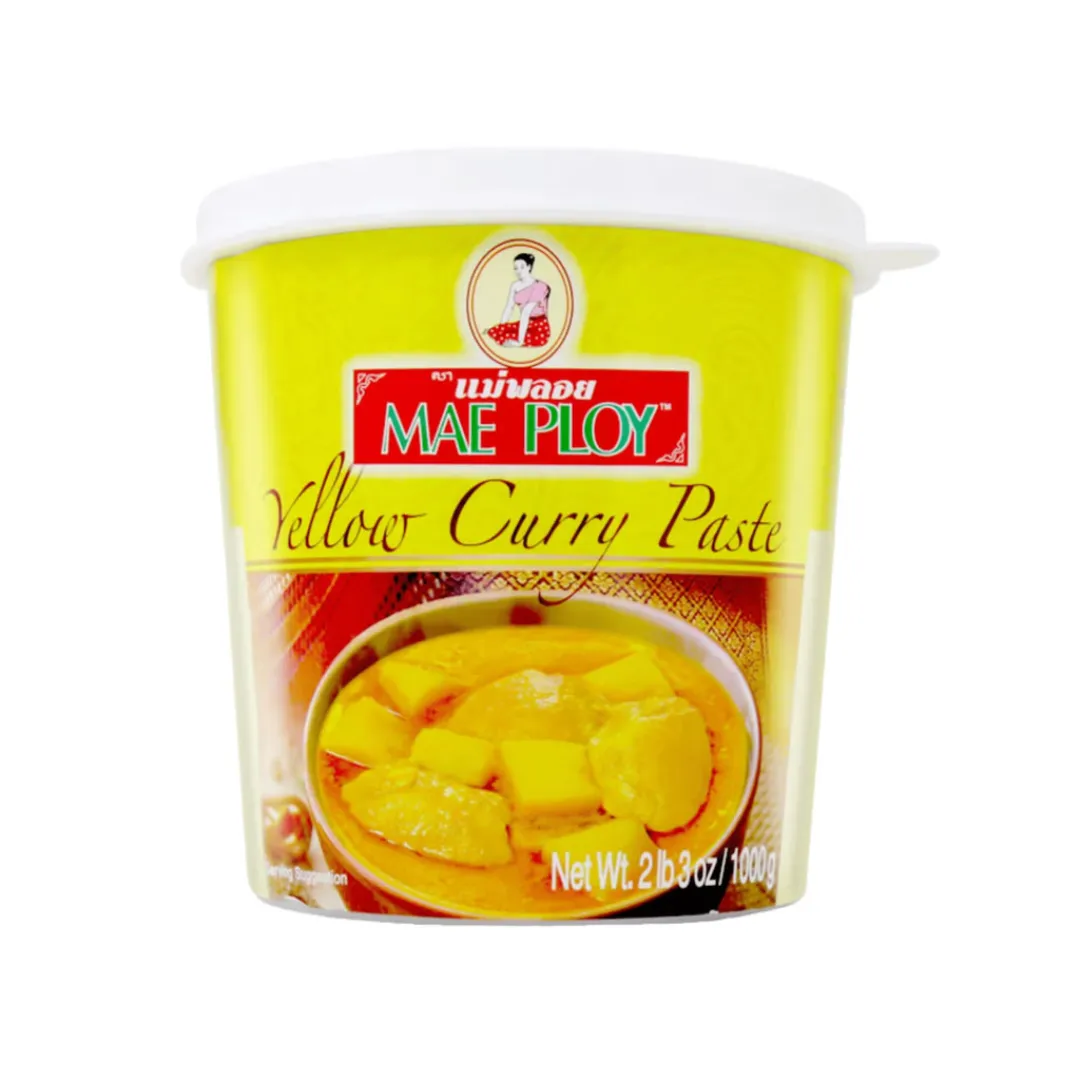 Esta Pasta de Curry Amarillo (Yellow Curry Paste) de Mae Ploy es un condimento tailandés auténtico y concentrado, esencial para crear el clásico curry amarillo (Gaeng Garee). Elaborado con chiles amarillos secos, cúrcuma, lemongrass y especias aromáticas, proporciona un sabor suave, cremoso y ligeramente picante. Su formato grande es ideal para cocineros frecuentes o cocinas profesionales que buscan la base de sabor más auténtica para guisos, sopas y salsas tailandesas.