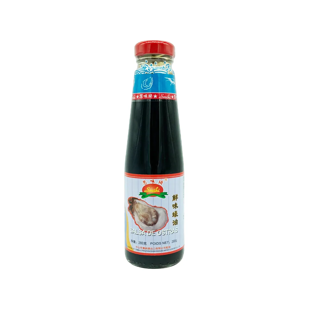 La Salsa de Ostras (Salsa de Ostras) de Smiki es un condimento clásico y robusto, esencial para aportar ese brillo característico y sabor profundo a sus preparaciones. Con una textura aterciopelada y un equilibrio perfecto entre lo dulce y lo salado, esta salsa es ideal para saltear brócoli, marinar carnes rojas o como base para glaseados de aves. Su capacidad para realzar el umami natural de los ingredientes la convierte en un producto indispensable en cualquier despensa orientada a la cocina china y tailandesa.