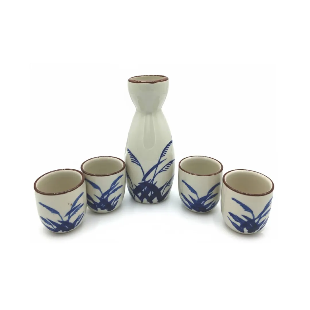 Eleve su experiencia de degustación con nuestro Set de Sake Blanco y Hoja Azul, una colección artesanal que captura la serenidad del diseño tradicional japonés en cada detalle. Este conjunto de cinco piezas, elaborado en cerámica de alta calidad, presenta un acabado blanco puro adornado con delicados trazos de hojas en azul cobalto que evocan la naturaleza en calma. Compuesto por una botella tokkuri de cuello estilizado y cuatro copas ochoko a juego, este set no solo es el recipiente ideal para servir sake a la temperatura perfecta, ya sea frío o caliente, sino que también funciona como un elemento decorativo de sofisticación atemporal para su mesa o estudio.
